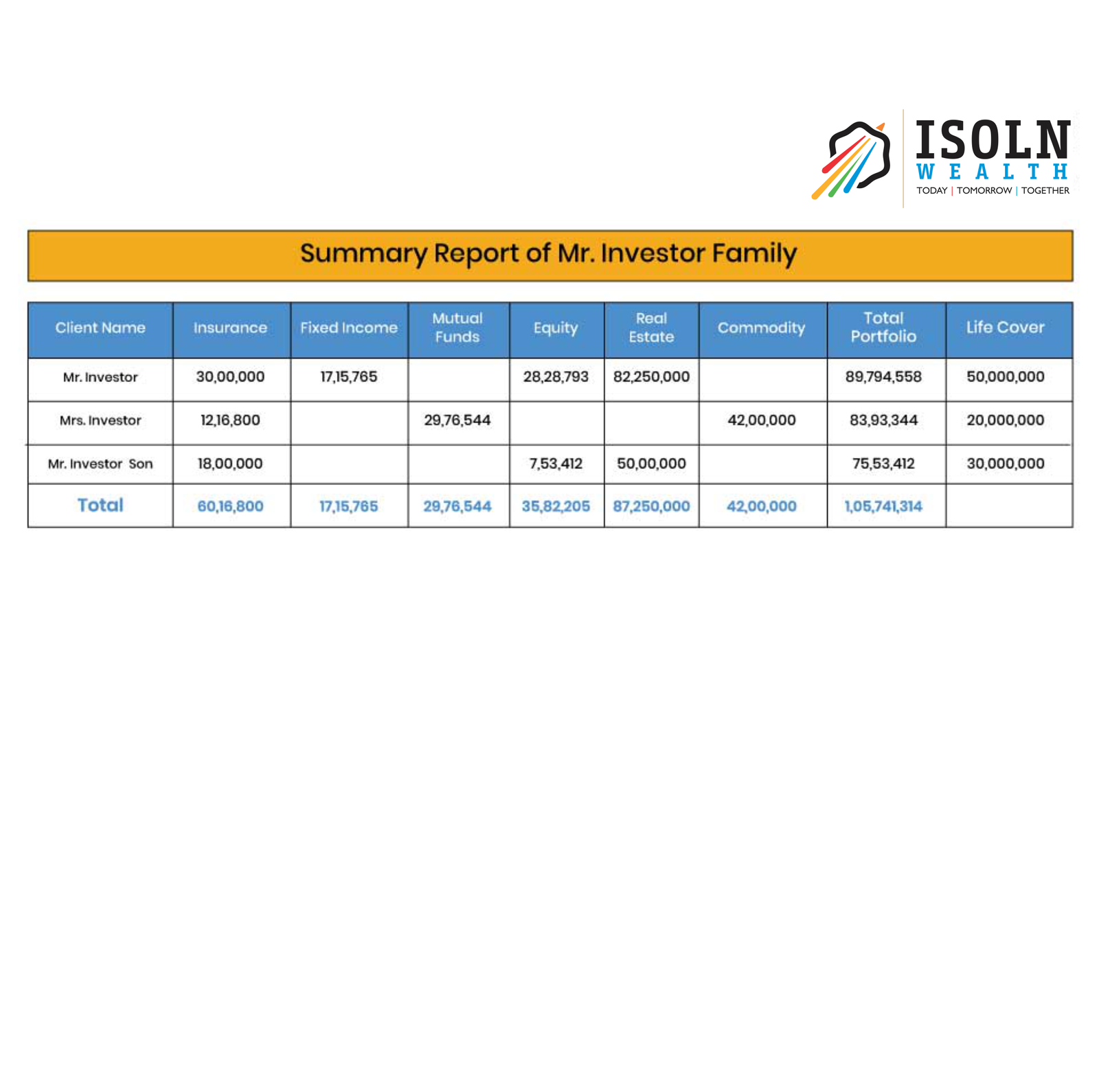 ISOLN WEALTH differentiation is derived from a transparent, timely & technology-enabled services delivered by some of the leading talented professionals in the country. ISOLN WEALTH professionals are grouped by focus and our clients are able to deal with our professionals who speak their language. Our internal information technology and knowledge management systems enable the delivery of informed and effective services to clients.